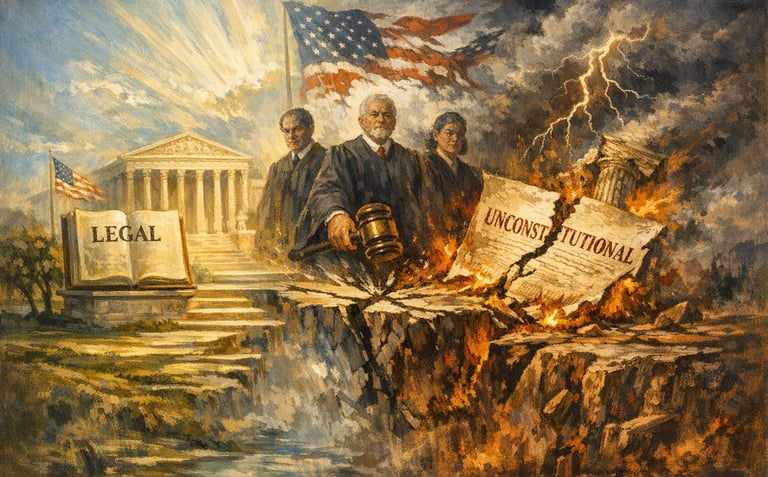 Perhaps one of the most noted examples of the clash between legality and constitutionality is seen in the Supreme Court’s 2022 reversal of an earlier Court decision concerning abortion in Roe v. Wade, (1973). The difference here is that the legality of abortion was not a result of congressional statute nor of constitutional amendment, but of a ruling by the earlier Court. In the original case the Supreme Court, in a finding that purported to offer balance between a woman’s right to privacy concerning her body and the state’s interest in protecting life, proclaimed by fiat that to a certain point in a pregnancy, abortion must be deemed a woman’s constitutional right. Yet this decision, on its face, appears to directly conflict with the previously recognized unalienable right to life (for the child).